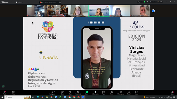 Con una emotiva ceremonia virtual realizada el lunes 10 de noviembre, concluyó la Edición 2025 del Diploma en Gobernanza, Regulación y Gestión Integrada del Agua, organizado por el Instituto para el Diálogo Global y la Cultura del Encuentro (IDGCE) en el marco del Programa Internacional del Agua – ACQUAS, junto a la Universidad Nacional de San Antonio de Areco (UNSaDA) y el Instituto Universitario del Agua y Saneamiento (IUAS).