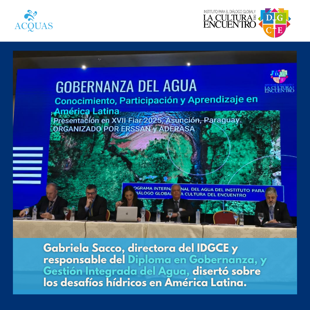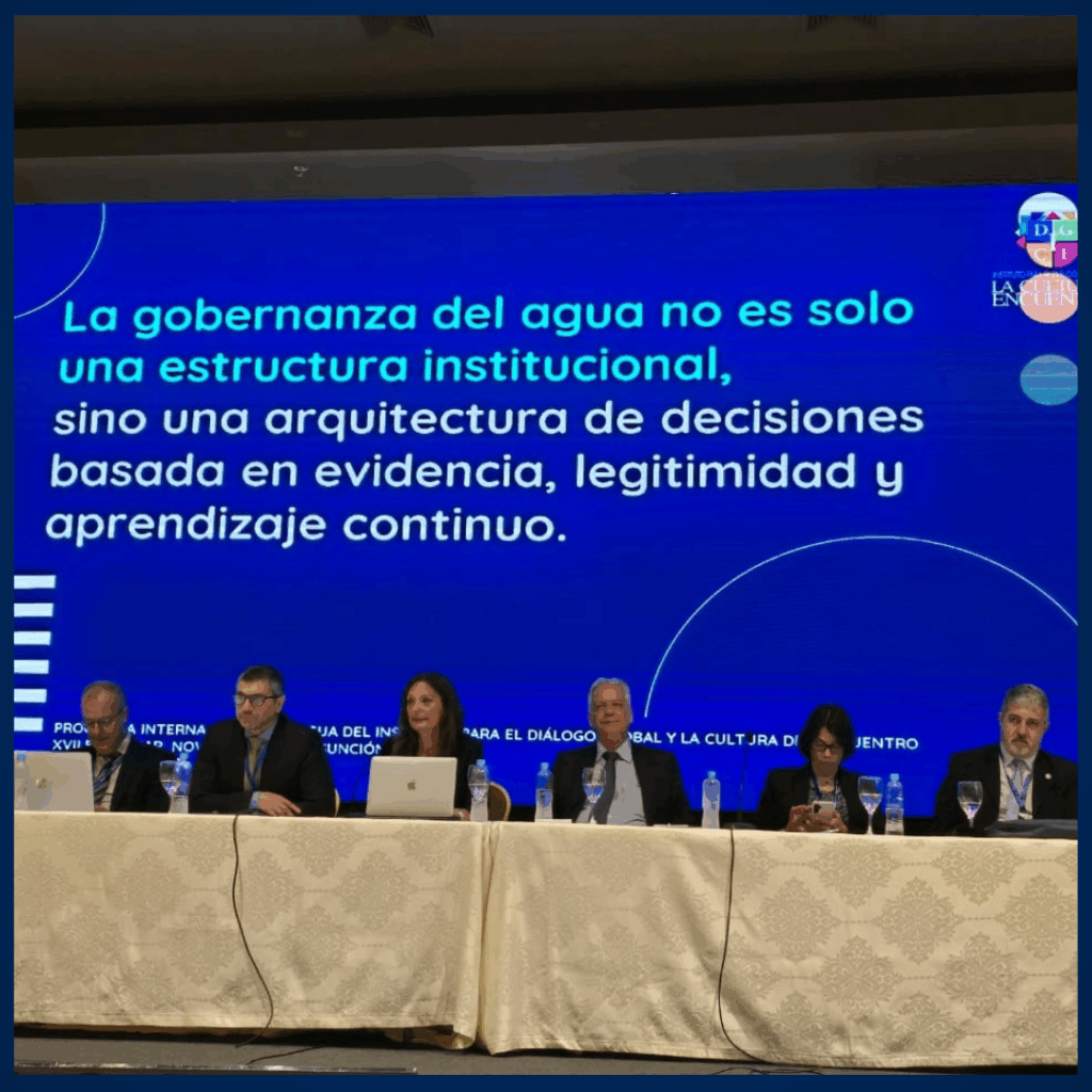 En este espacio estratégico, el Instituto para el Diálogo Global y la Cultura del Encuentro (IDGCE) participó activamente presentando el Programa Internacional del Agua – ACQUAS y su Diploma en Gobernanza, Regulación y Gestión Integrada del Agua, una de las iniciativas más reconocidas en la región para la formación de profesionales vinculados al sector.